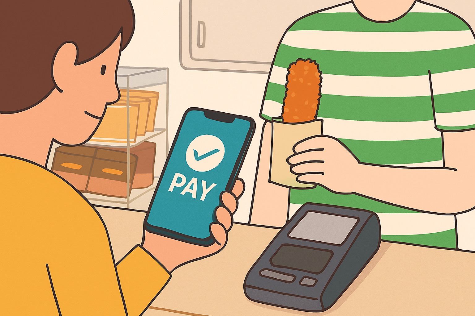 - お会計の前に、すかさずスマホを取り出し、ファミペイのバーコードを提示。(よし、これで後日のアプリクーポンは確定!)